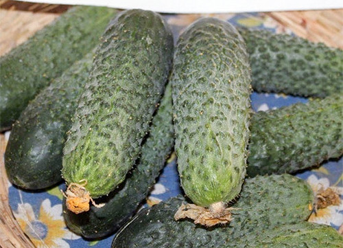 Плоди вирівняні, коротке, овальної форми, з часто розташованими горбками середнього розміру; співвідношення довжини плоду до діаметру — 3,2:1. Маса зеленця 70 — 90 грам. Шкірка насиченого темно-зеленого кольору, з короткими світлими смугами. Шипи білі, не колючі. М'якуш щільний, соковитий, без гіркоти і порожнеч. Товарна врожайність становить 13,6 — 19,3 кг/кв. м